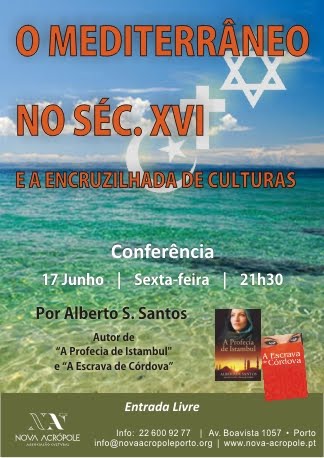 Na próxima Sexta-feira, 17 de Junho, às 21h30m a Nova Acrópole realizará uma conferência dedicada ao tema: O Mediterrâneo no séc. XVI e a encruzilhada de Culturas por Alberto S. Santos (Escritor, autor de "A Profecia de Istambul" e a "Escrava de Córdova"). Uma viagem a uma época considerada o século de Ouro onde convivem num fervente caldeirão cultural, na bacia do Mediterrâneo, as religiões do cristianismo, judaismo e islamismo...