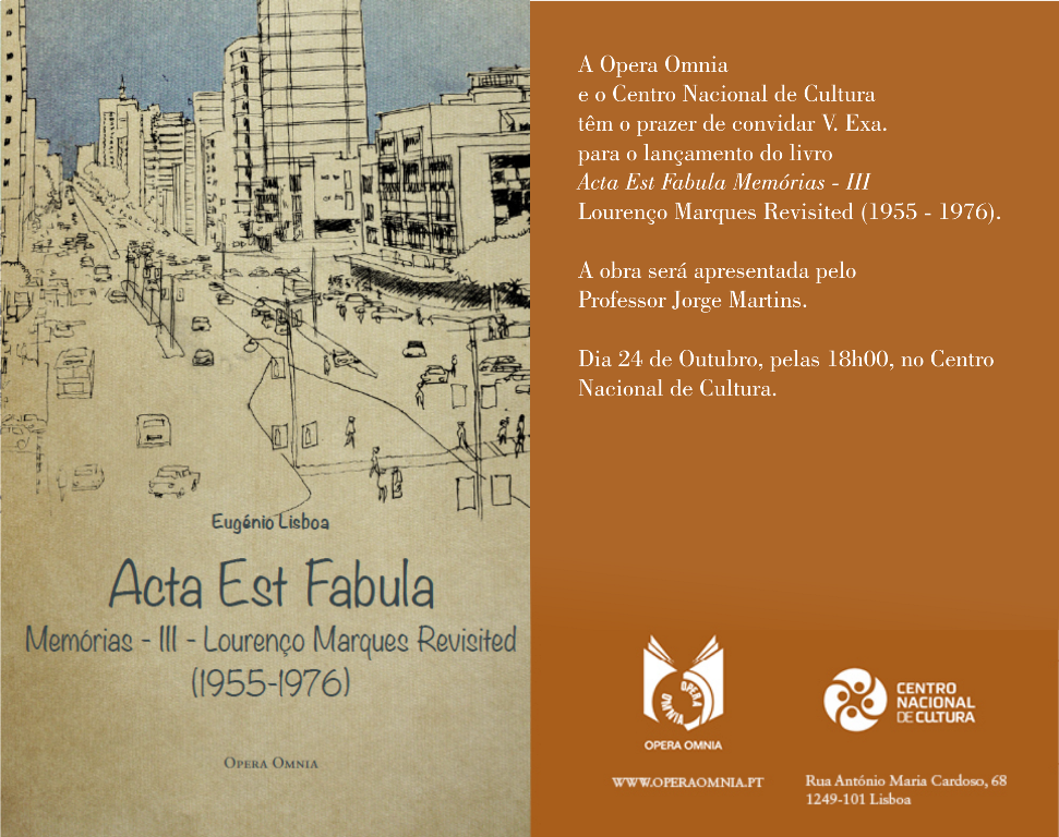 Lançamento:"Acta Est Fabula Memórias - III - Lourenço Marques Revisited (1955 - 1976)" de Eugénio Lisboa, 24 Outubro